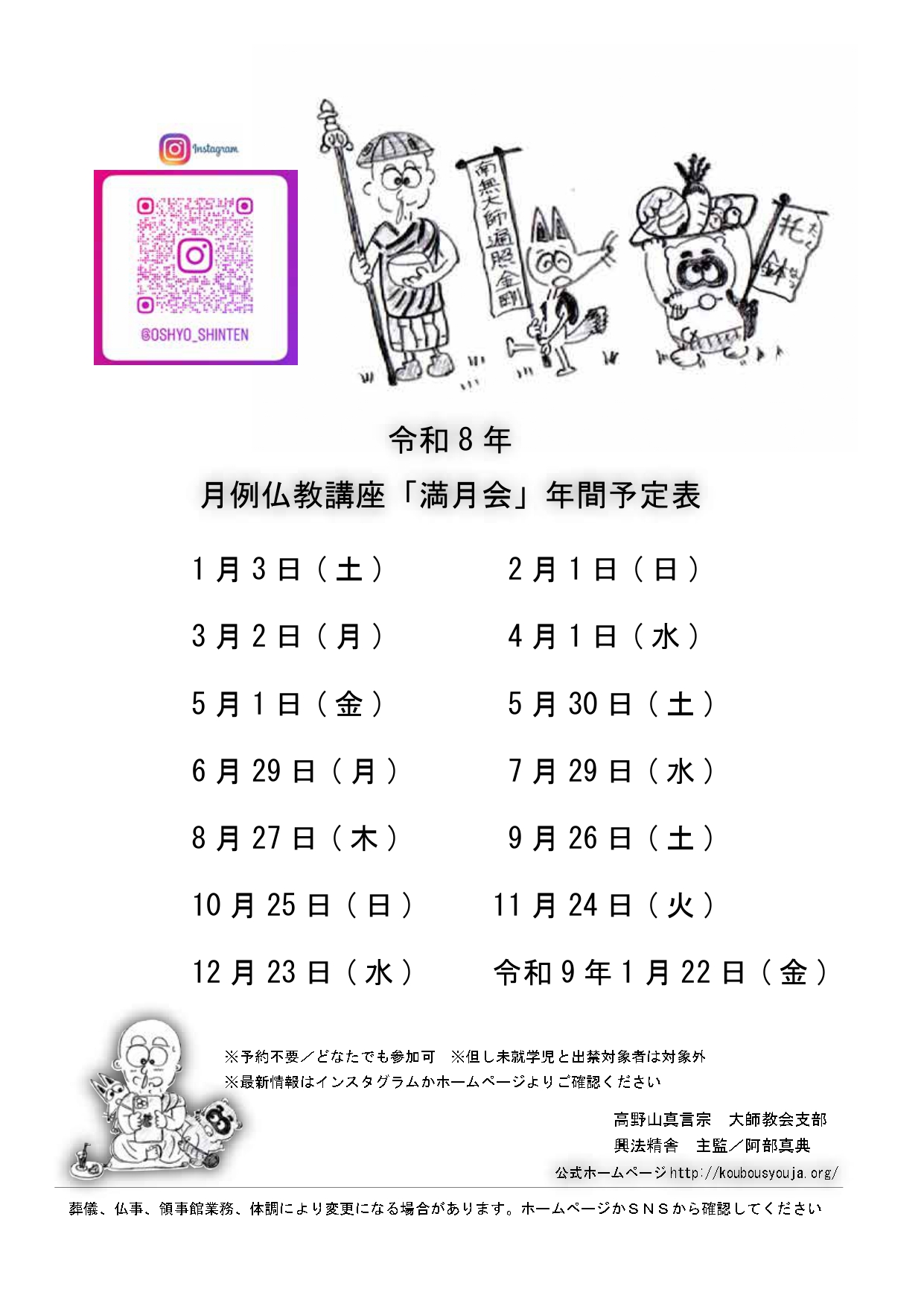 令和8年月例仏教講座「満月会」年間予定表